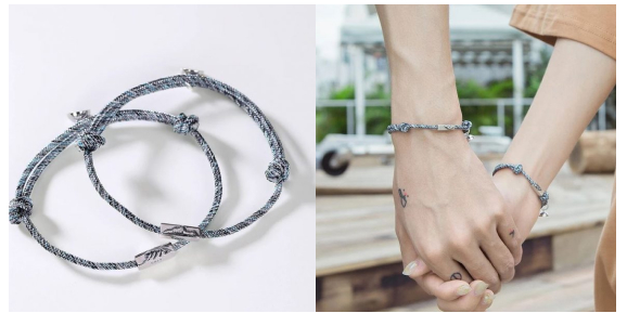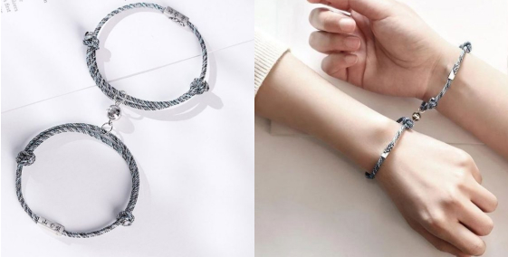 Such a cute simple couple bracelet. The size is adjustable and it’s super comfy. I even swim with it on and have no issues. It does stick to everything magnetic, but I find it kinda fun!